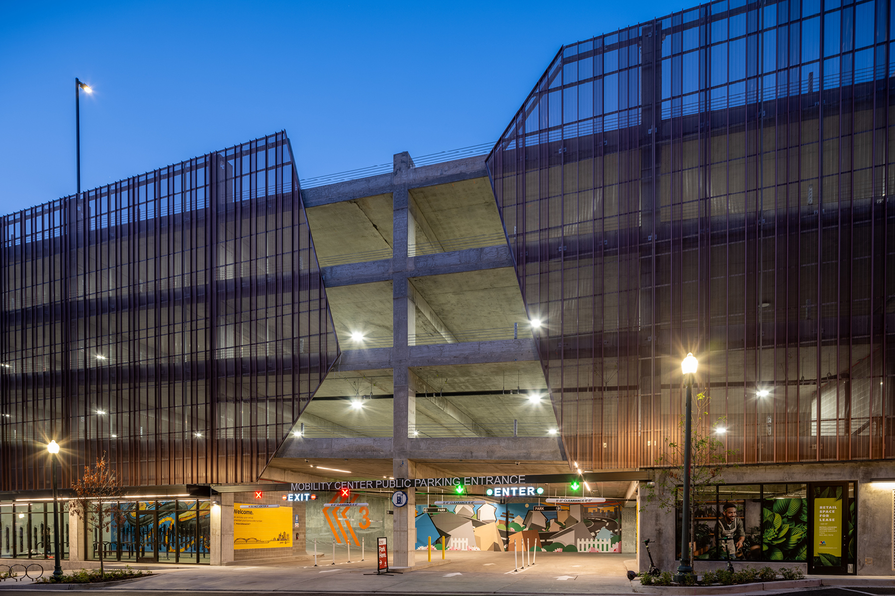 The Mobility Center is scaled for a city that still relies heavily on its cars but is designed to be adaptable to the future growth towards urbanization and density. One key example is the concrete structure was designed and constructed to add 2 additional levels when needed in the future.