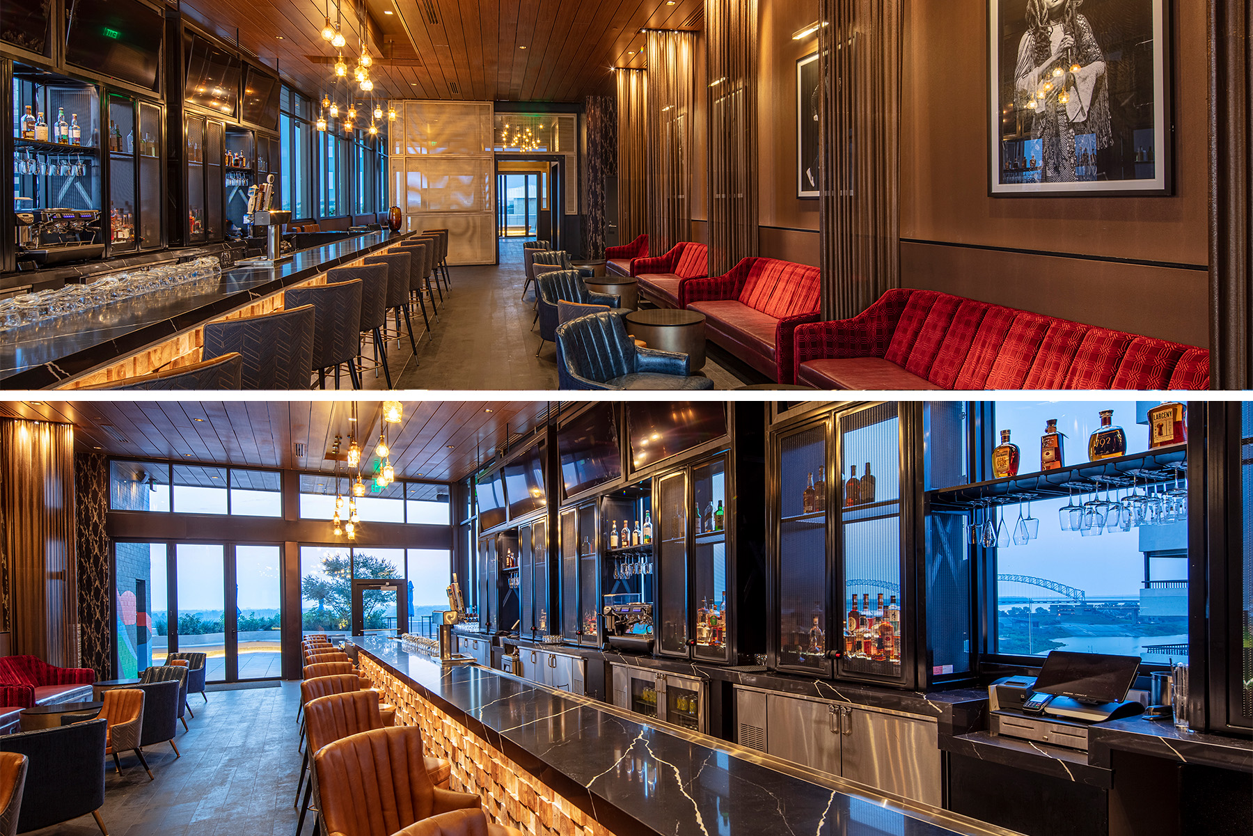 4. Hotel bar and lounge is sited at a ‘see and be seen’ corner location at Beale and Front. Photo by Dero Sanford / ThinkDero Architectural Photography