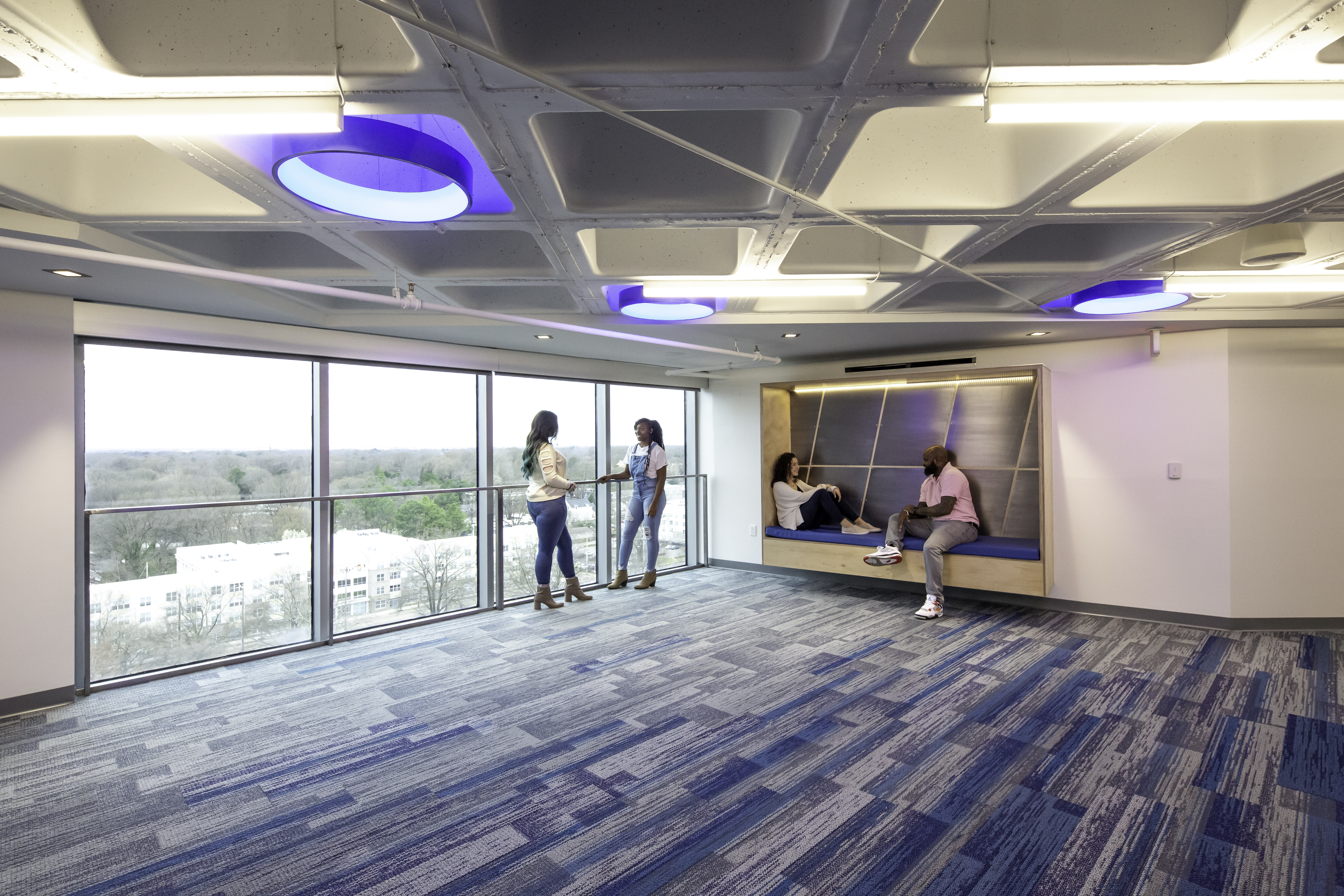 2- Photo by CLR Photography-The goal was to provide a space that is energetic and exciting for prospective students while relating to the overall broad context of this urban campus and the City of Memphis.