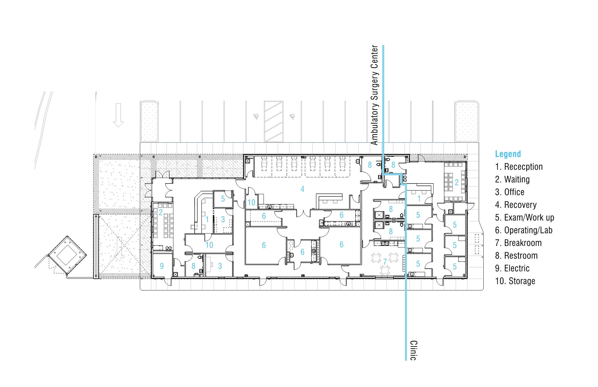 3 – Front Façade and entries into the ASC and Clinic Photo by Bruce Cole Photography.