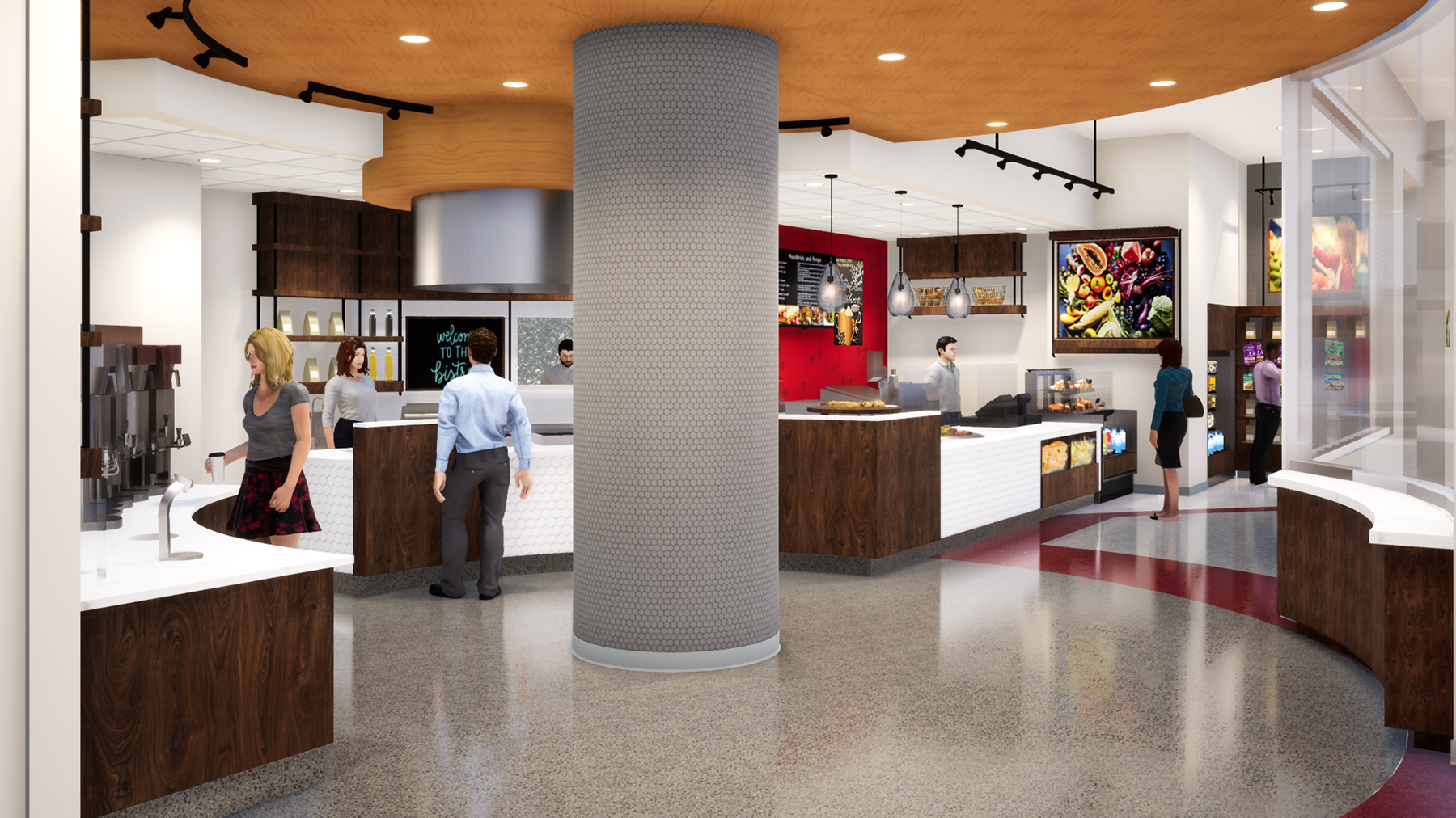 The project also incorporates office areas on each floor, meeting and collaboration spaces, as well as a conference and event center. There is a "collaboration bridge" across an atrium connecting 3 building wings. The building employs state-of-the-art IT, Data, and AV systems. The exterior design and material selections are based on the existing campus architecture, while introducing more high-tech imagery than typical campus buildings.